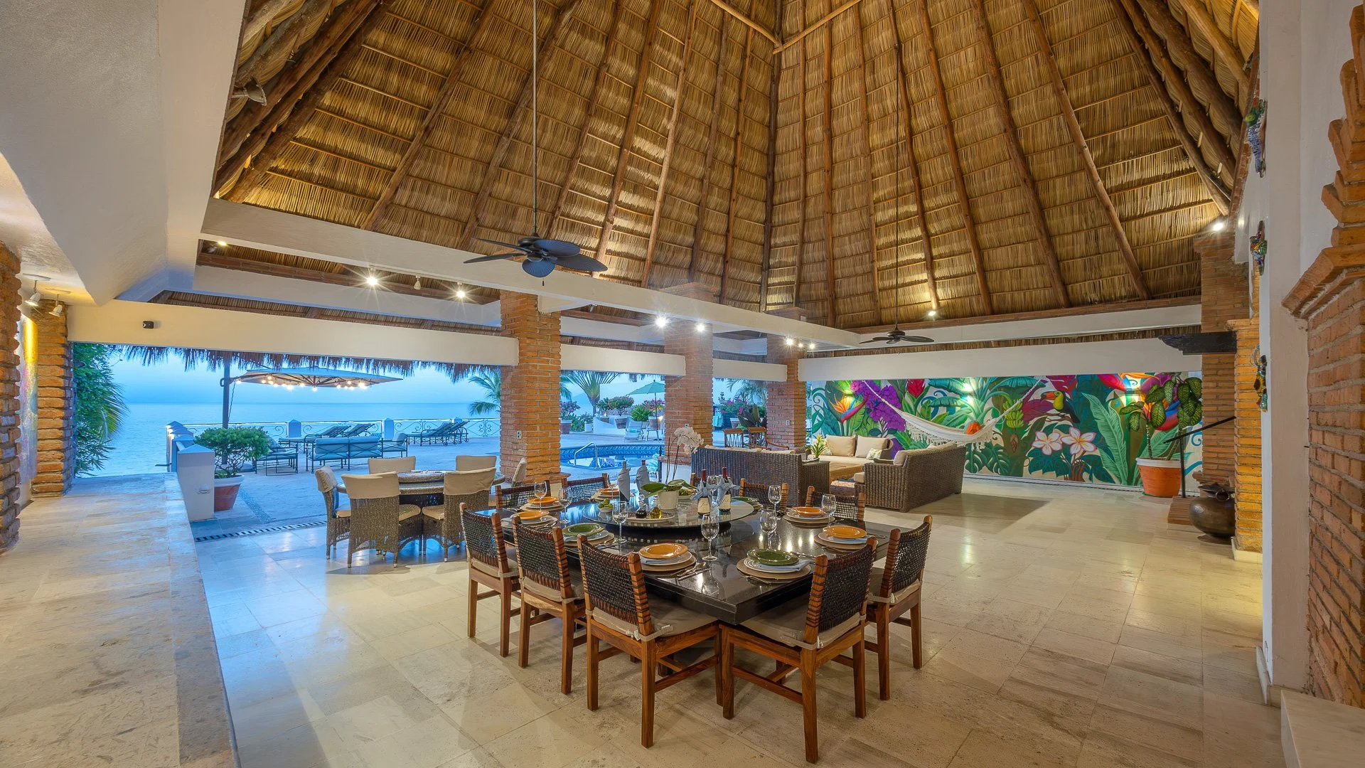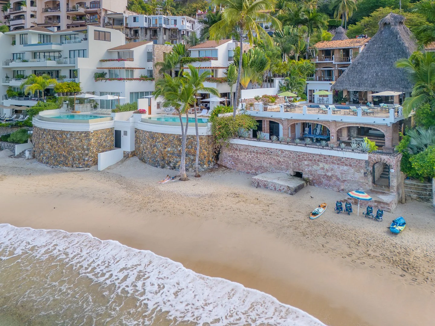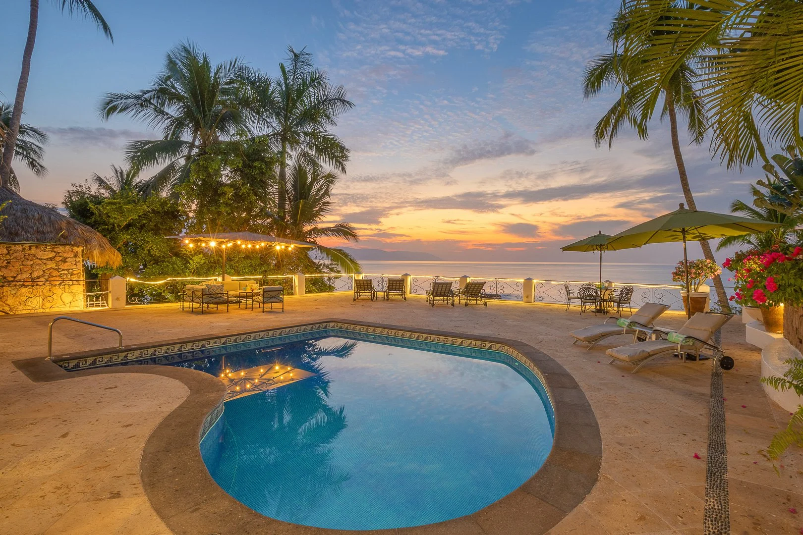 It is home to one of the largest private palapas in Puerto Vallarta at 70 feet tall and 50 feet wide, and has embodied the indoor/outdoor living spaces. Relax in a hammock with a good book or lounge by the pool, heated to any temperature you desire, with margarita in hand! Amazing private chef will create delicious meals that you would find in a five star restaurant. Space to park two cars if you decide to rent, or just grab a taxi since it is such a short drive into Old Town where you will find numerous gourmet restaurants, fun activities for all ages, shopping and more! Also possible to walk 15 minutes along the beach to Playa Los Muertos, a much larger and busier beach in Old Town PV full of beachfront restaurants and lots of people.